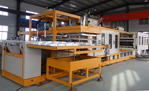 本公司研制開發(fā)的自動(dòng)成型裁斷一體機(jī)是一種全能型的熱成型裁斷機(jī)組,以真空成型為主,兼壓空成型、模壓成型及綜合成型,可加工多種熱成型塑料片材。機(jī)組采用全電腦PLC控制,具有結(jié)構(gòu)先進(jìn),性能穩(wěn)定,易操作,產(chǎn)量高,成型面積大,自動(dòng)化程度高等特點(diǎn)。本機(jī)主要用于成型PSP材料,用于食品餐盒、托盤、碗、杯等各式包裝制品。本設(shè)備的最大優(yōu)點(diǎn)是集成型裁斷一體。生產(chǎn)出的成品直接堆垛收集。本設(shè)備在生產(chǎn)過程中除了節(jié)能降耗等優(yōu)點(diǎn)外,還大大節(jié)省了工作面積、生產(chǎn)時(shí)間和勞動(dòng)力的支出。